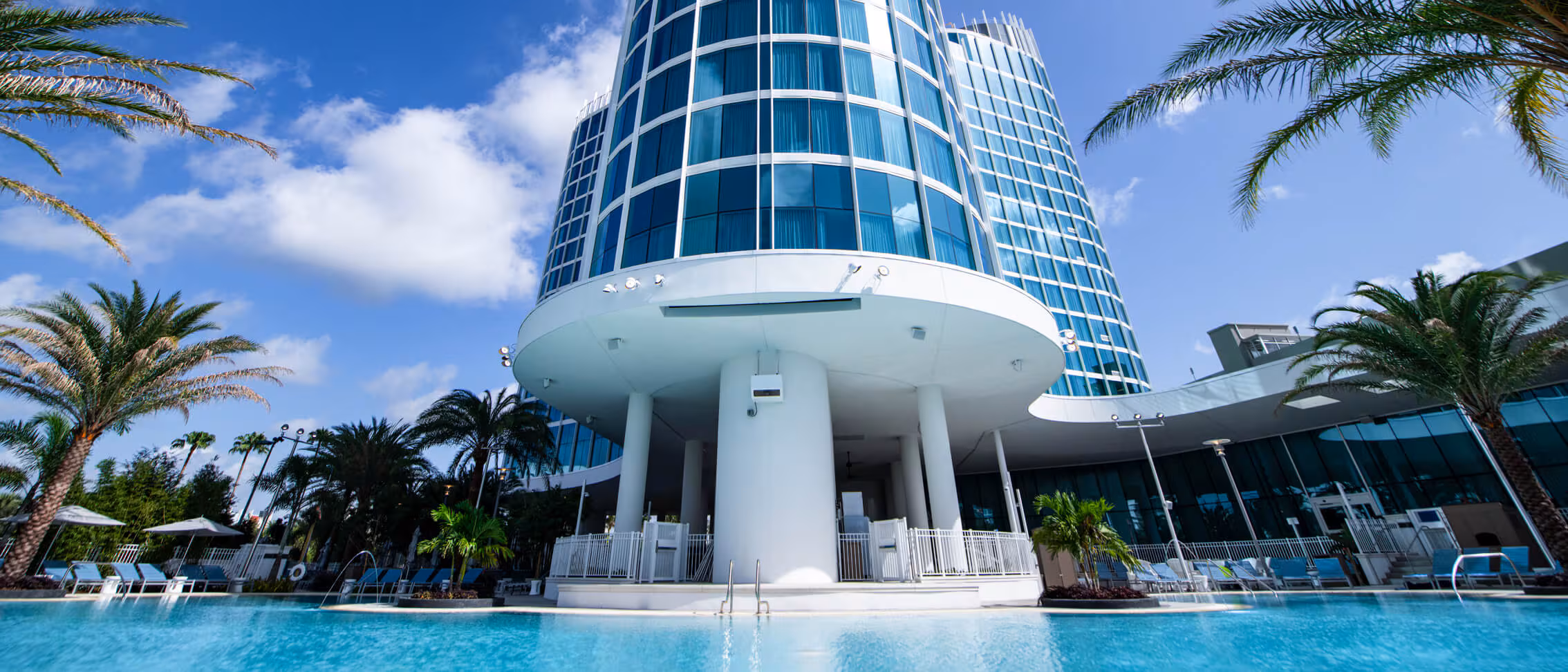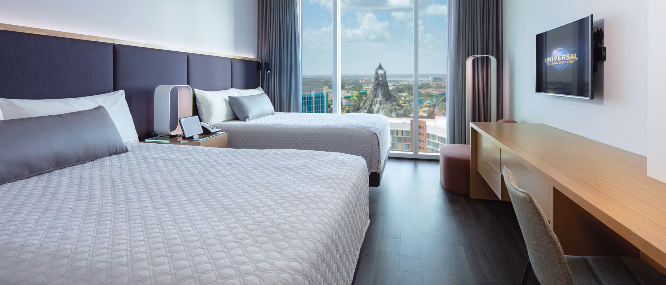 Experience a fresh, fun way to stay. A perfectly priced, affordable escape that fits your style—all within walking distance of Universal Volcano Bay. Aventura Hotel's sleek design with free-flowing, stylish spaces add a special current of energy to every visit. From the heights of the stunning rooftop bar to flavors of the market-style dining options to the refreshing splash of the pool and beyond, everything here is smart, modern, vibrant, relaxed, and just plain cool— including the exclusive theme park benefits that come with being an Aventura Hotel guest.